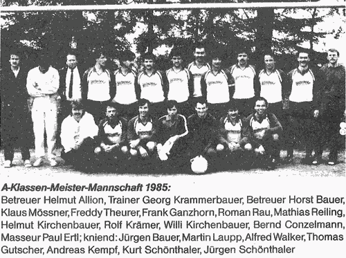 hinten von links: Joachim Reising, Vorstandsmitglied Bernd Conzelmann, Physiotherapeut Adalbert Luft, Torwarttrainer Ralf Fessler, Ruben Goldschmidt, Murat Citak, Lothar Ritter, Jens Wolfinger, Michael Förschler, Michael Bulling, Trainer Toni Zehentner, Spielausschuß Marco Knebel, Spiellausschußvorsitzender Jörg Conzelmann vorne von links: Hansi Mauer, Dennis Garganese, Lars Reiner, Gundram Rentschler, Mathias Greb, Heiko Lichtenfels, Gilson Almeida, Luciano Soares, Bastian Faaß, Rodrigo Almeida, Delano Mattos